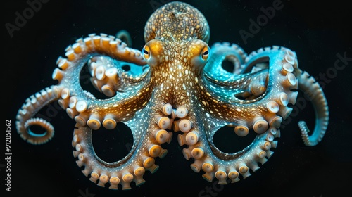 Obraz premium Colorful octopus swimming gracefully in deep ocean waters