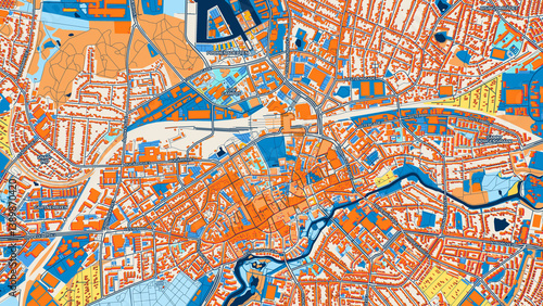 © Knut Hebstreit, Obraz premium Colorful Odense Street Map with Labels and Buildings