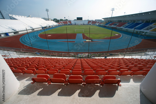 © topten22photo, Fototapeta premium Colorful of stadium seats in background.