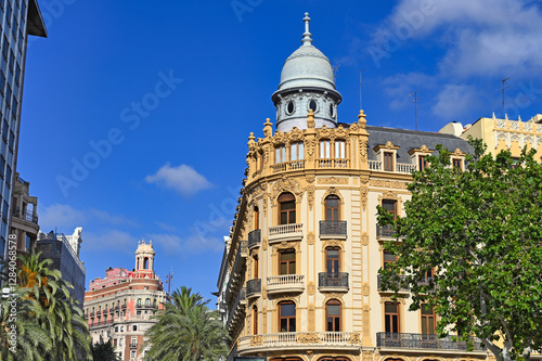 © goce risteski, Naklejka premium Colorful old buildings in Valencia,Spain