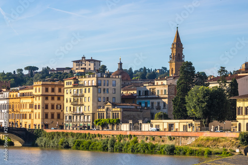 Naklejka premium Colorful old buildings line the Arno River in Florence, Italy