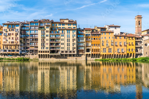 Naklejka premium Colorful old buildings line the Arno River in Florence, Italy
