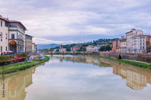 Fototapeta premium Colorful old buildings on the bank of Arno river in Florence, Italy with...