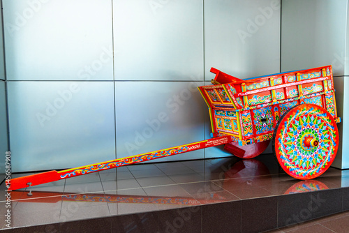 Naklejka premium Colorful old Costa rican trailer wheelbarrow in Alajuela Costa Rica.