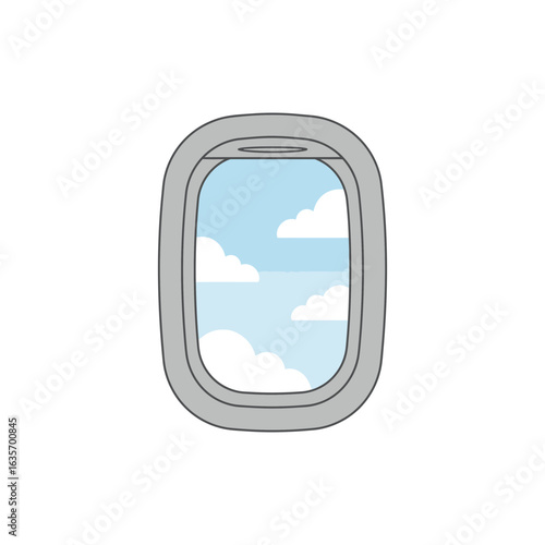 © Ali, Fototapeta premium Colorful open airplane window with clouds travel sky icon with no white color