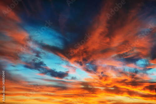 Fototapeta premium Colorful orange and blue dramatic sky