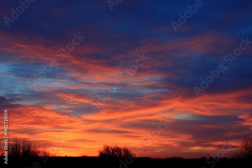 © BISO, Fototapeta premium Colorful orange blue sunset sky gradient view