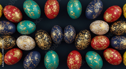 © loc, Fototapeta premium Colorful Ornate Easter Eggs on Dark Background