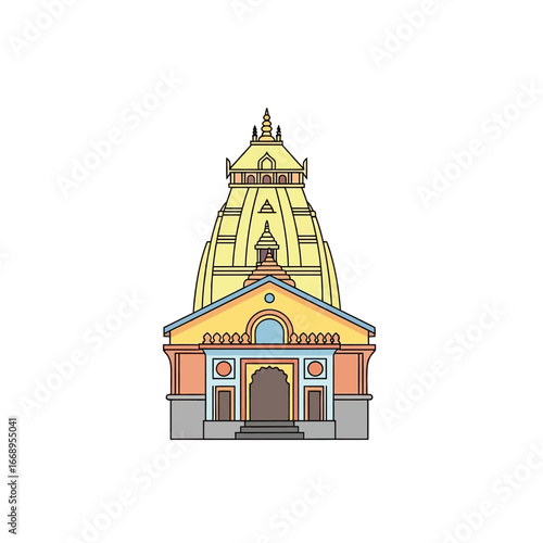 © rifqi, Fototapeta premium Colorful Outline Drawing of a Traditional Indian Temple.