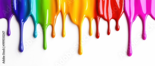 © NovaVision, Naklejka premium Colorful Paint Dripping on White Background