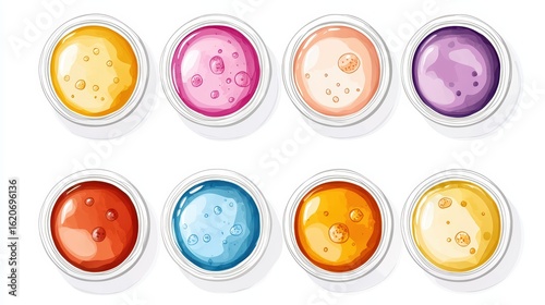 Fototapeta premium Colorful Paint Pots with Bubbles on White Background