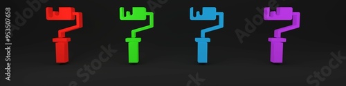 © Vadim, Obraz premium Colorful Paint roller brush icon isolated on black background. Minimalism concept. 3D render illustration
