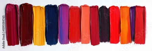 © MariiaDemchenko, Naklejka premium Colorful paint strokes arranged in various shades and tones on canvas