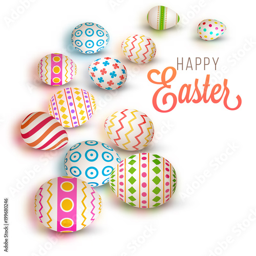 © Abdul Qaiyoom, Fototapeta premium Colorful painted eggs on white background. Happy Easter Concept.