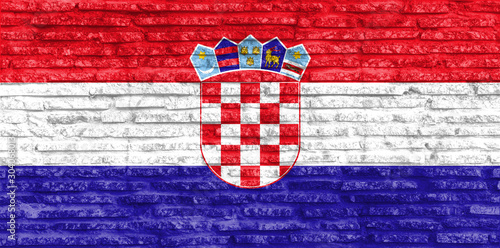 Naklejka premium Colorful painted national flag of Croatia on old brick wall. Illustration.