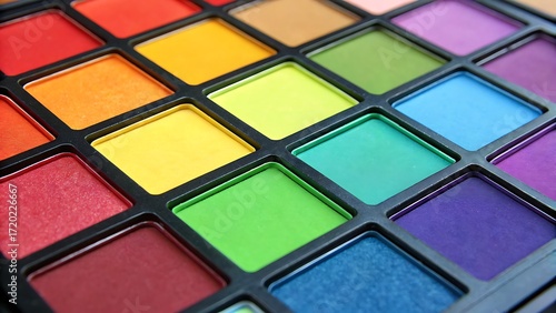 Naklejka premium Colorful Palette with Assorted Cosmetics Offering a Wide Spectrum of Vibrant...