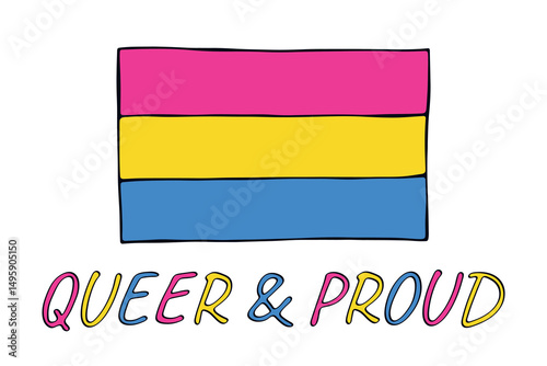© Daria Shane, Obraz premium Colorful Pansexual pride flag Happy pride day LGBTQ community Pride Month Vector hand drawn doodle for posters, stickers, logo, cards