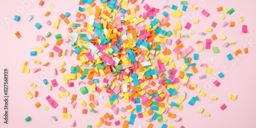 © retirementfun, Obraz premium Colorful paper confetti exploding on pastel pink background with vibrant colors and celebration theme, multicolor