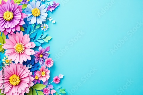 © Pixels Hunter, Fototapeta premium Colorful paper flowers on blue background with creative floral arrangement.