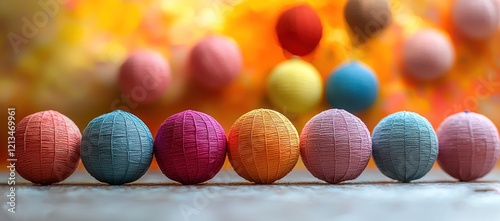 © Wiryo, Fototapeta premium Colorful paper lanterns in a row, blurred background.