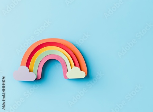 Fototapeta premium Colorful Paper Rainbow and Clouds on Light Blue Background Decor