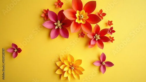 © Phennapha, Naklejka premium Colorful paper roses arranged as a backdrop, decor, art and craft, paper flowers