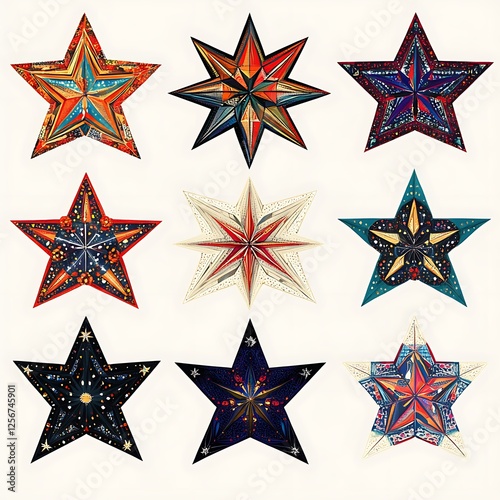 Obraz premium Colorful Paper Stars, Ornate Design, Isolated, Decorative, Backgroundless