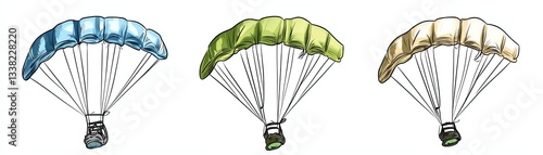 © ธนากร บัวพรหม, Obraz premium Colorful parachutes in various shades isolated on a white background.