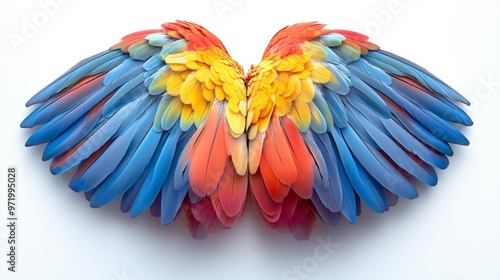 Obraz premium Colorful Parrot Feathers in Wing Shape Generative AI
