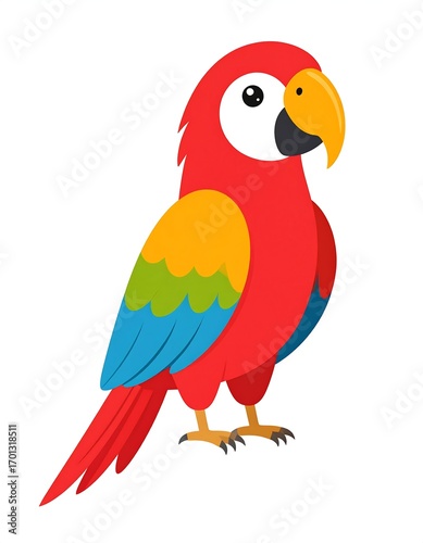 Fototapeta premium Colorful parrot illustration, tropical bird, white background, children's book