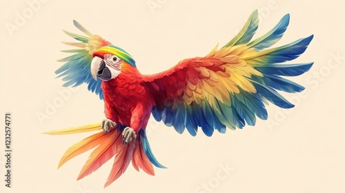 © SlashStd, Fototapeta premium Colorful parrot in flight, tropical background