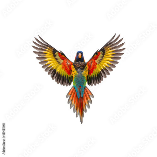 © chalindu, Obraz premium Colorful parrot in flight with open wings