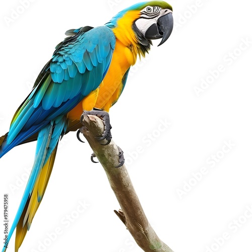 © JHONDOMINIC, Obraz premium Colorful Parrot Perched on a Branch, Feathers Vibrant and Detailed