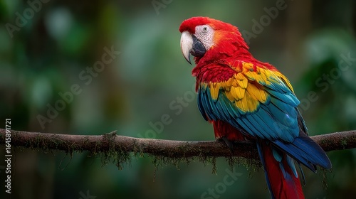© falikh, Obraz premium Colorful parrot perched on a branch in a lush forest
