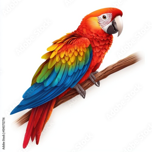 © tanapat, Fototapeta premium Colorful parrot perched on a branch, white isolated background
