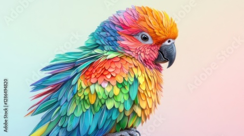Fototapeta premium Colorful parrot portrait, vibrant feathers, soft pastel background