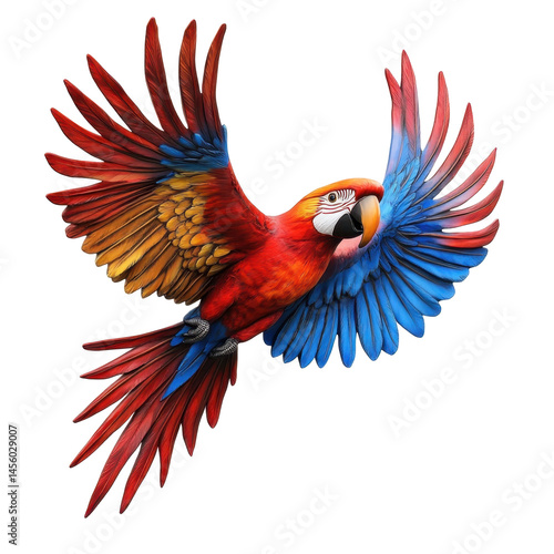 © Tanu, Fototapeta premium Colorful parrot soaring gracefully in mid-air against a neutral background