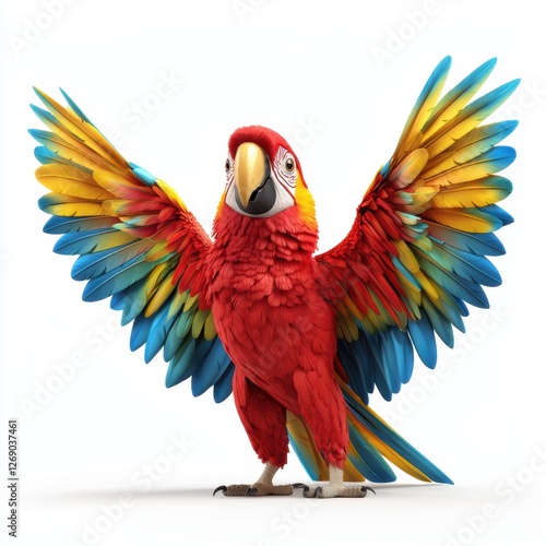 © Svitlana, Fototapeta premium Colorful parrot with spread wings and a cheeky expression isolated on white