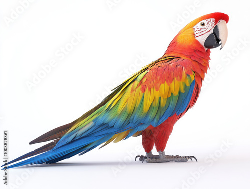 © Oranuch, Fototapeta premium Colorful parrot with vibrant feathers, white isolated background.