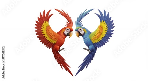 Fototapeta premium Colorful parrots forming heart shape