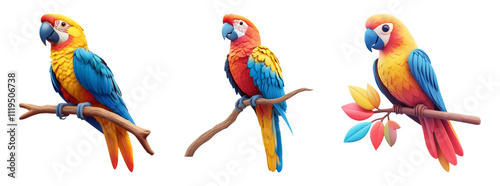 © Putra, Obraz premium Colorful Parrots on Branches with Transparent Background