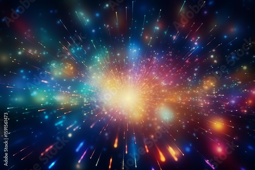 Fototapeta premium Colorful particles exploding from the center creating an abstract background with bokeh effect