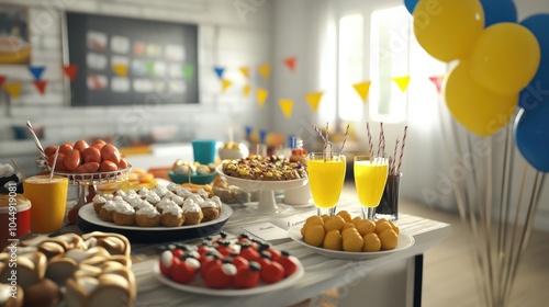 Naklejka premium Colorful Party Spread with Delicious Treats and Drinks