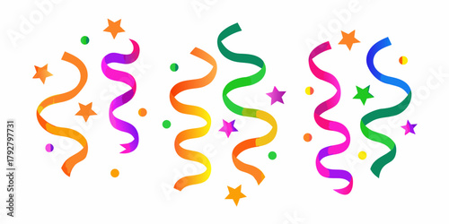 © Rathindranath, Obraz premium Colorful party streamers and stars falling for celebration and fun