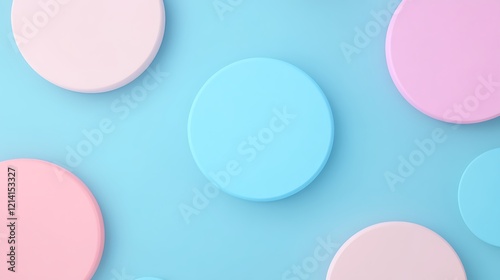 Obraz premium Colorful Pastel Circles on Soft Blue Background for Creative Design and...