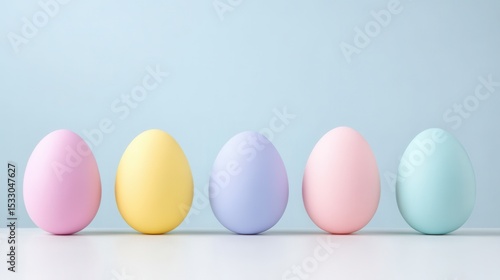 Fototapeta premium Colorful Pastel Eggs Displayed on a Clean Minimalist Surface