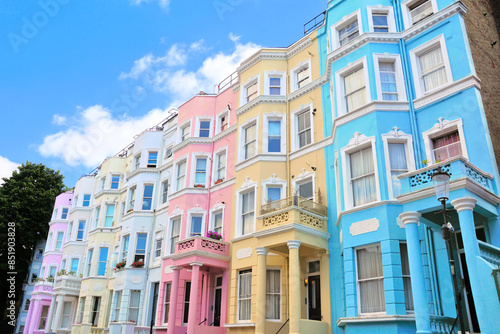 © Jenifoto, Naklejka premium Colorful pastel houses of Notting Hill, London, England
