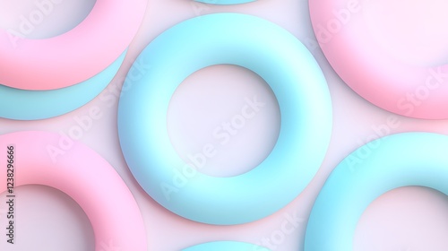 © Tackey, Obraz premium Colorful Pastel Rings in Soft Blue and Pink Arrangement on a Light Background for Creative Background Use