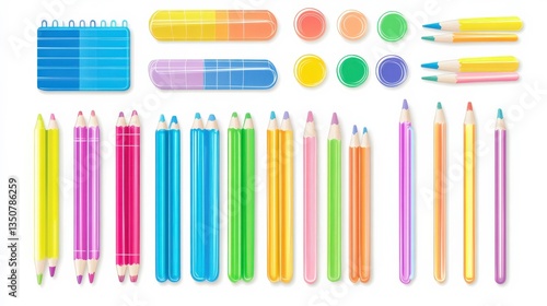 Obraz premium Colorful Pastel School Stationery on White Background