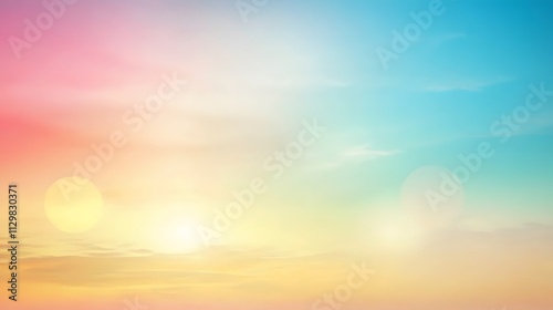 Obraz premium Colorful pastel sunrise sky with soft clouds and lens flares.